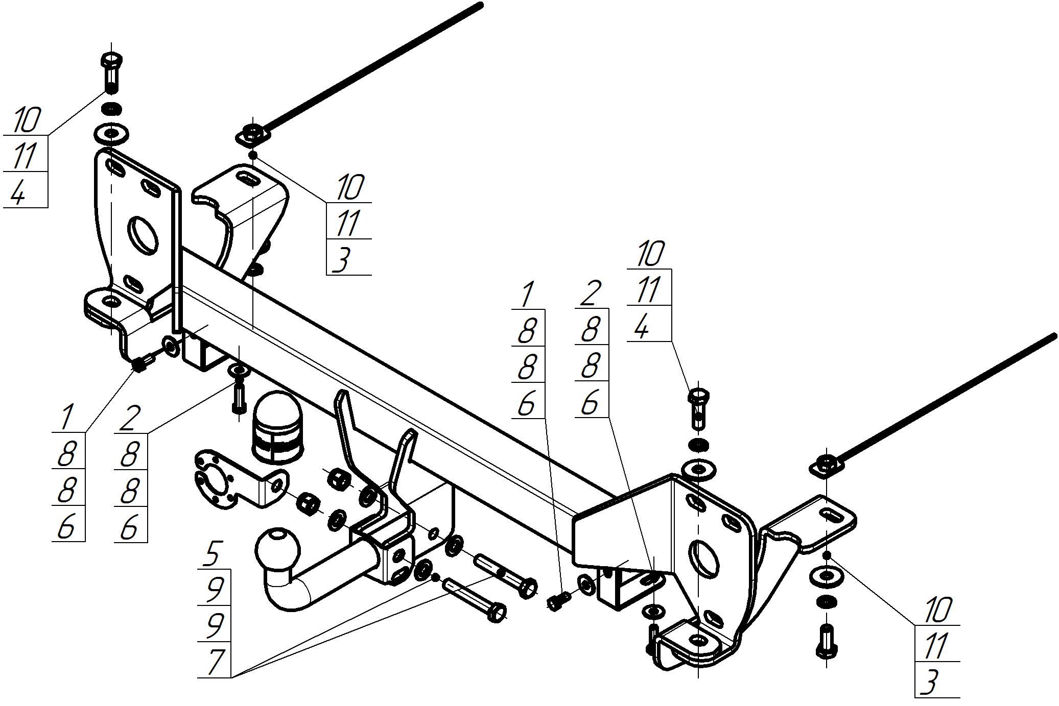 Фаркоп ZincaR для Toyota Land Cruiser 200 2015 - 2021 арт. ZT101FE