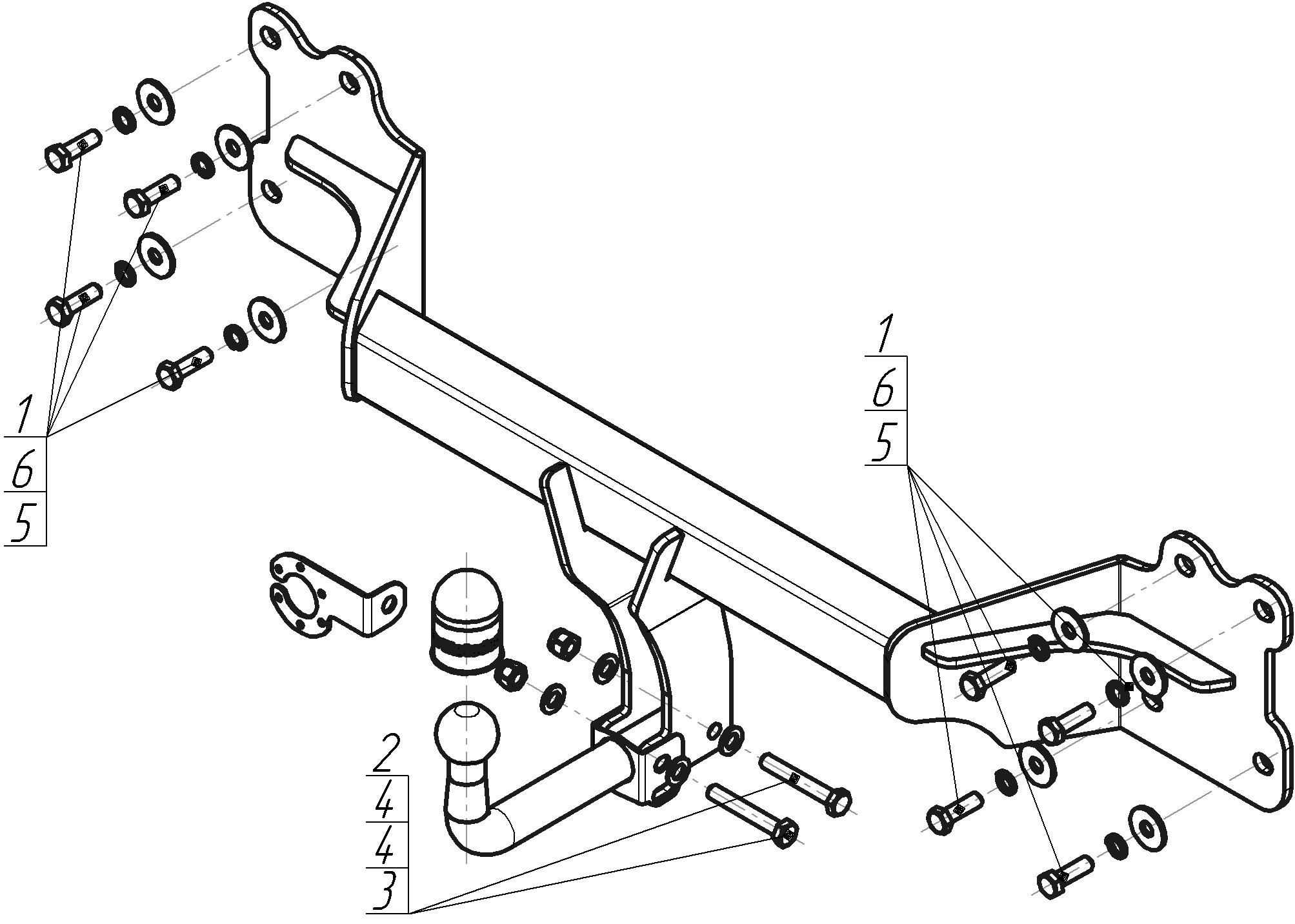 Установку ТСУ допускается производить только в сертифицированных установочных центрах. 1. Снять задний бампер. 2. Снять усилитель заднего бампера (в дальнейшем не понадобится). 3. Установить балку ТСУ в места крепления усилителя бампера, закрепить болтами М12х50 с шайбами и гр. шайбами 12. 4. Установить на место бампер, предварительно сделав в нём вырез. 6. Установить шар, подрозетник и зафиксировать их соответствующими крепежными элементами. 7. Протянуть все болтовые соединения. 8. Выполнить электромонтаж розетки световой сигнализации.