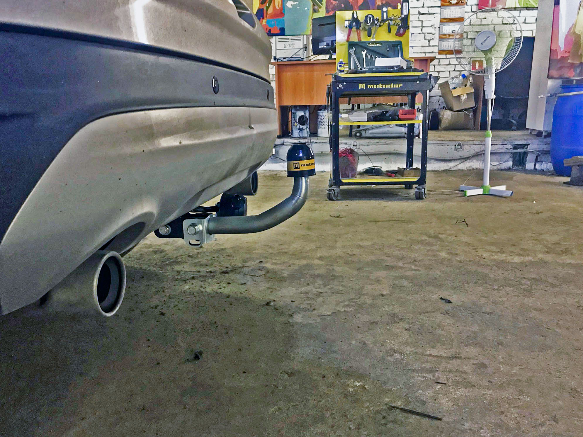 Установку ТСУ допускается производить только в сертифицированных установочных центрах. 1. Снять задний бампер и защитное покрытие в отверстиях лонжеронов в местах крепления кронштейнов. 2. Демонтировать усилитель бампера (в дальнейшем не понадобится). 3. Установить кронштейны, закрепить их вместе с прижимами при помощи болтов М12х40 с шайбами и гр. шайбами 12 (левый и правый кронштейны зеркальные!). 4. Закрепить на кронштейнах балку ТСУ при помощи болтов М12х40 с шайбами и гр. шайбами 12. 5. Установить на место задний бампер. 6. Установить шар и подрозетник, затянуть все крепежные элементы с необходимым усилием. 7. Выполнить электромонтаж розетки световой сигнализации.