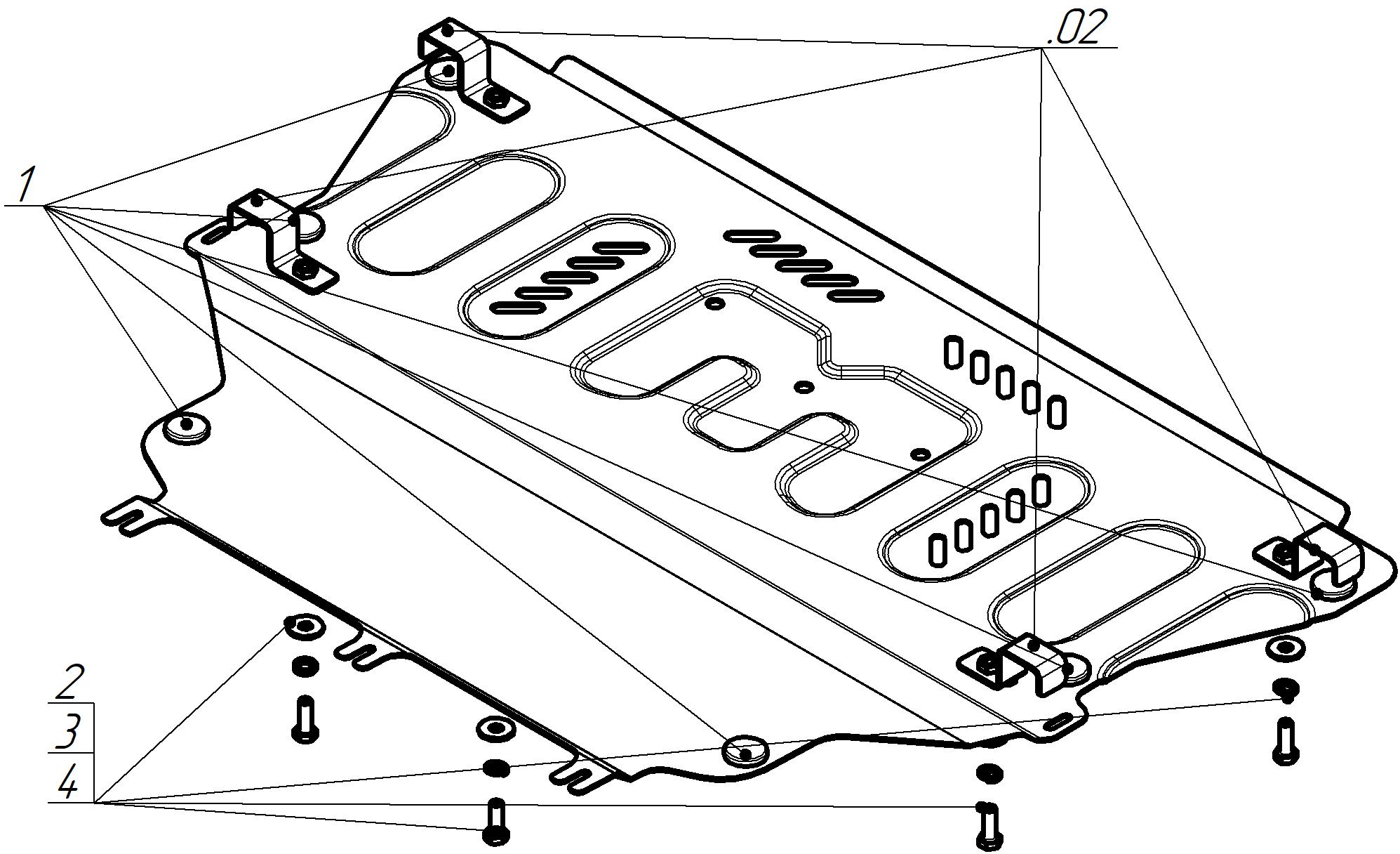 Защита двигателя, Защита переднего дифференциала, Защита коробки переключения передач (кпп), Защита раздаточной коробки MOTODOR для Haval H5 2020 - 2021 арт. 03118