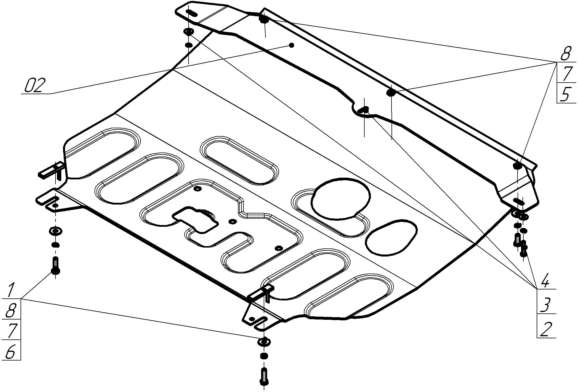 Защита двигателя, Защита коробки переключения передач (кпп) MOTODOR для Volkswagen Caddy 2010 - 2021 арт. 72302