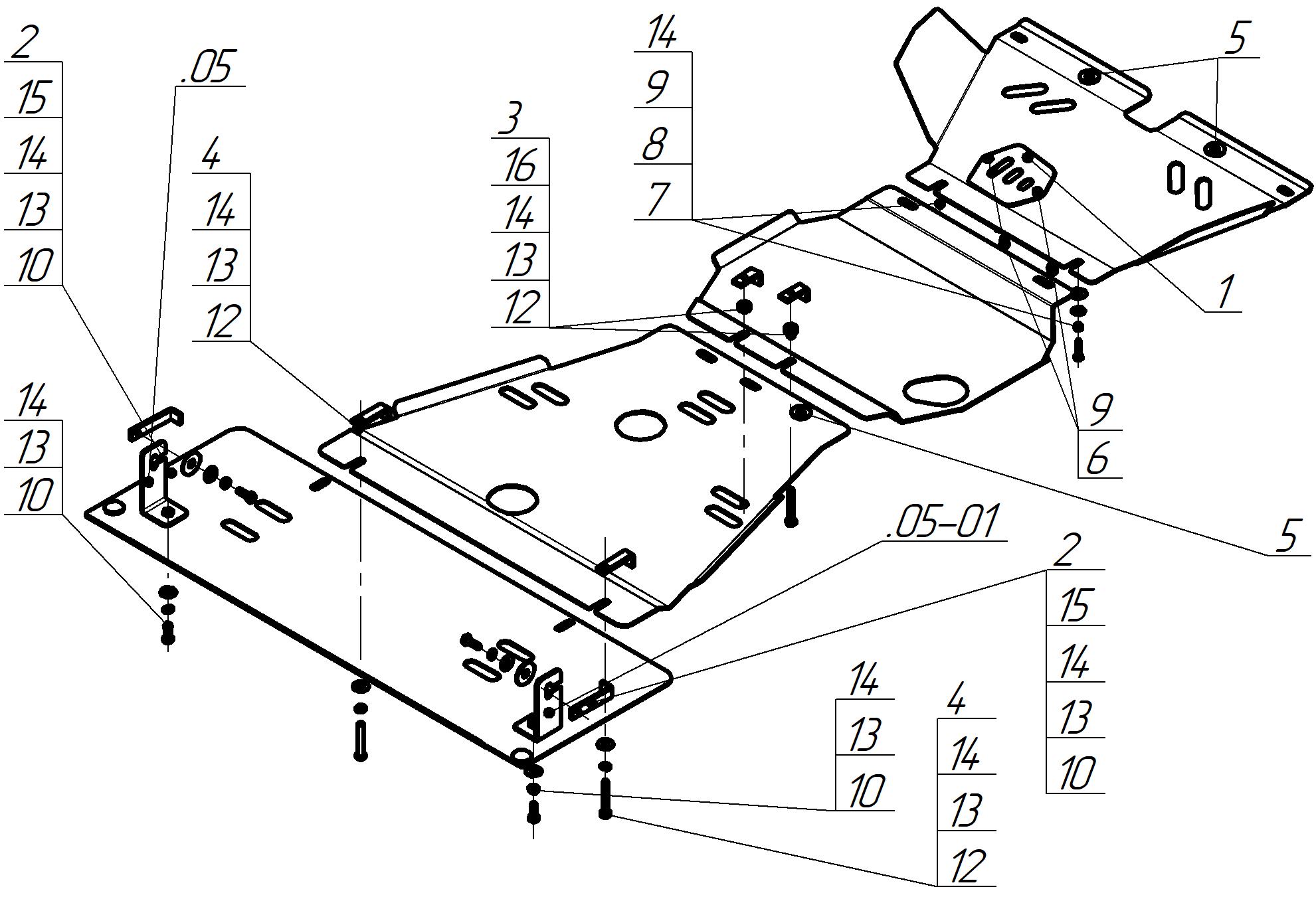 Защита двигателя, Защита переднего дифференциала, Защита коробки переключения передач (кпп) MOTODOR для Mitsubishi Pajero Sport II 2012 - 2016 арт. 11325