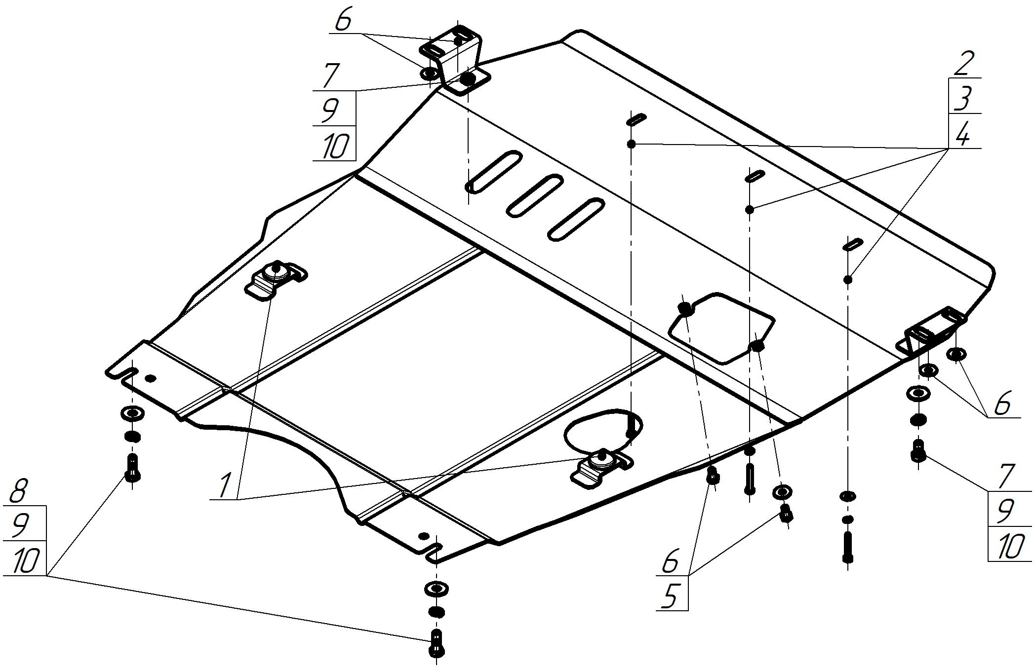 Защита двигателя, Защита коробки переключения передач (кпп) MOTODOR для Nissan NV200 2010 - 2016 арт. 71427
