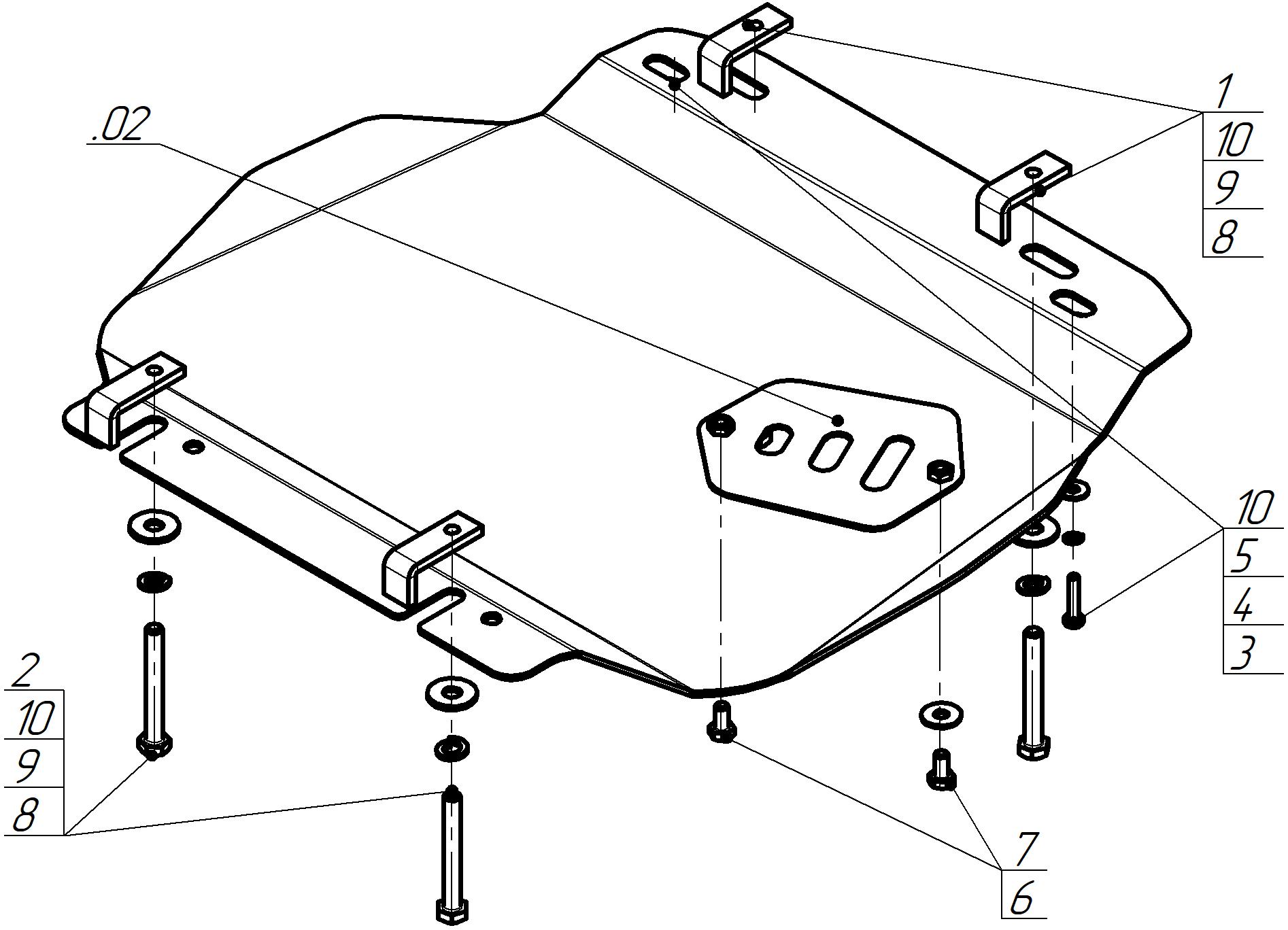 Защита двигателя, Защита коробки переключения передач (кпп) MOTODOR для Mitsubishi ASX 2012 - н.в. арт. 71337