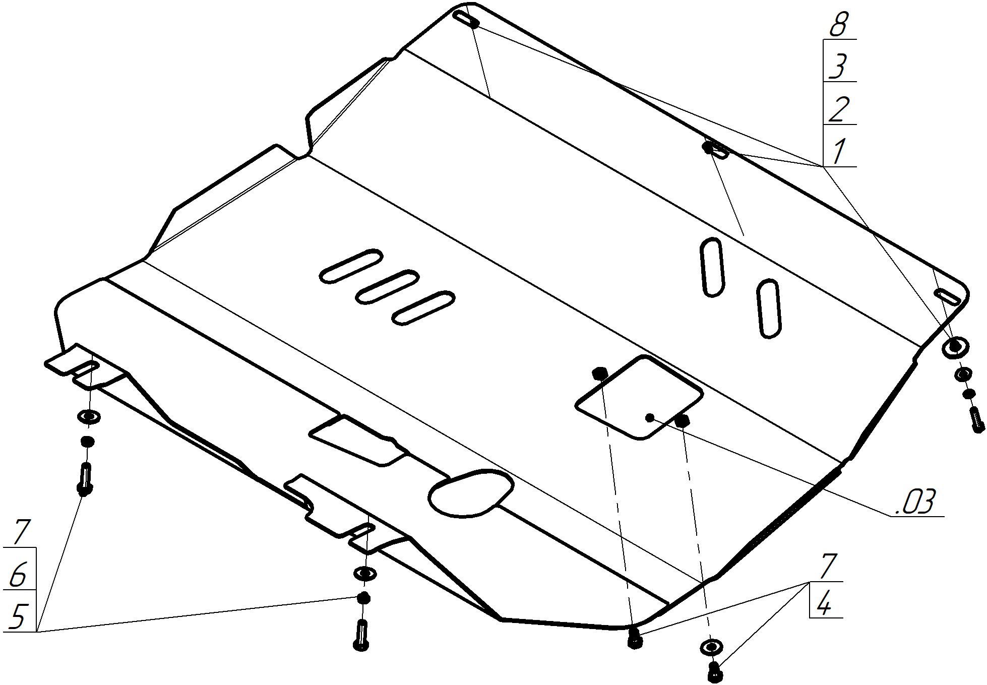 Защита двигателя, Защита коробки переключения передач (кпп) MOTODOR для FIAT Doblo Cargo 2005 - 2015 арт. 00613