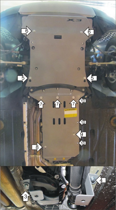 Защита двигателя, Защита коробки переключения передач (кпп), Защита радиатора, Защита раздаточной коробки MOTODOR для BMW X3 (f25) 2014 - 2018 Алюминий 5мм 20,2кг арт. 30203