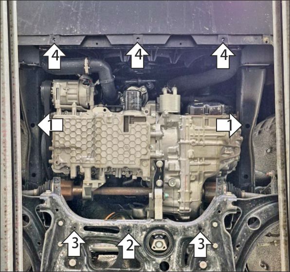 Защита двигателя, Защита коробки переключения передач (кпп) MOTODOR для FAW Bestune T90 2023 - н.в. Сталь 2мм 12,4кг арт. 73909