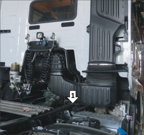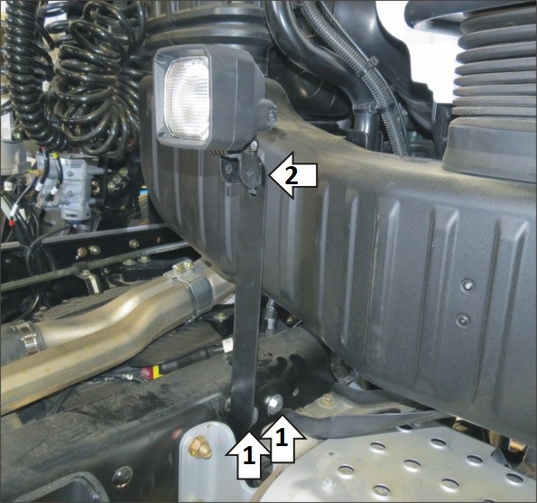 1. В штатные отверстия в раме автомобиля установить кронштейн при помощи болтов М10х40 с шайбами и гайками М10. 2. Установить на кронштейн светильник.