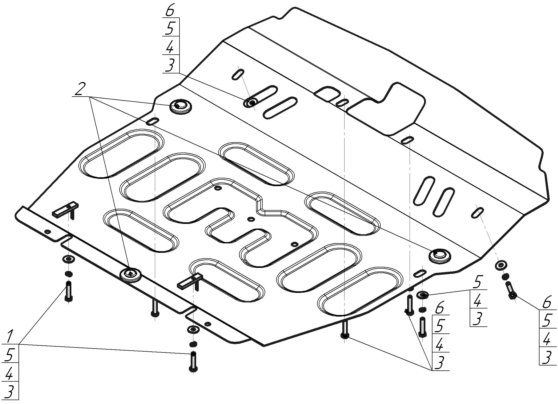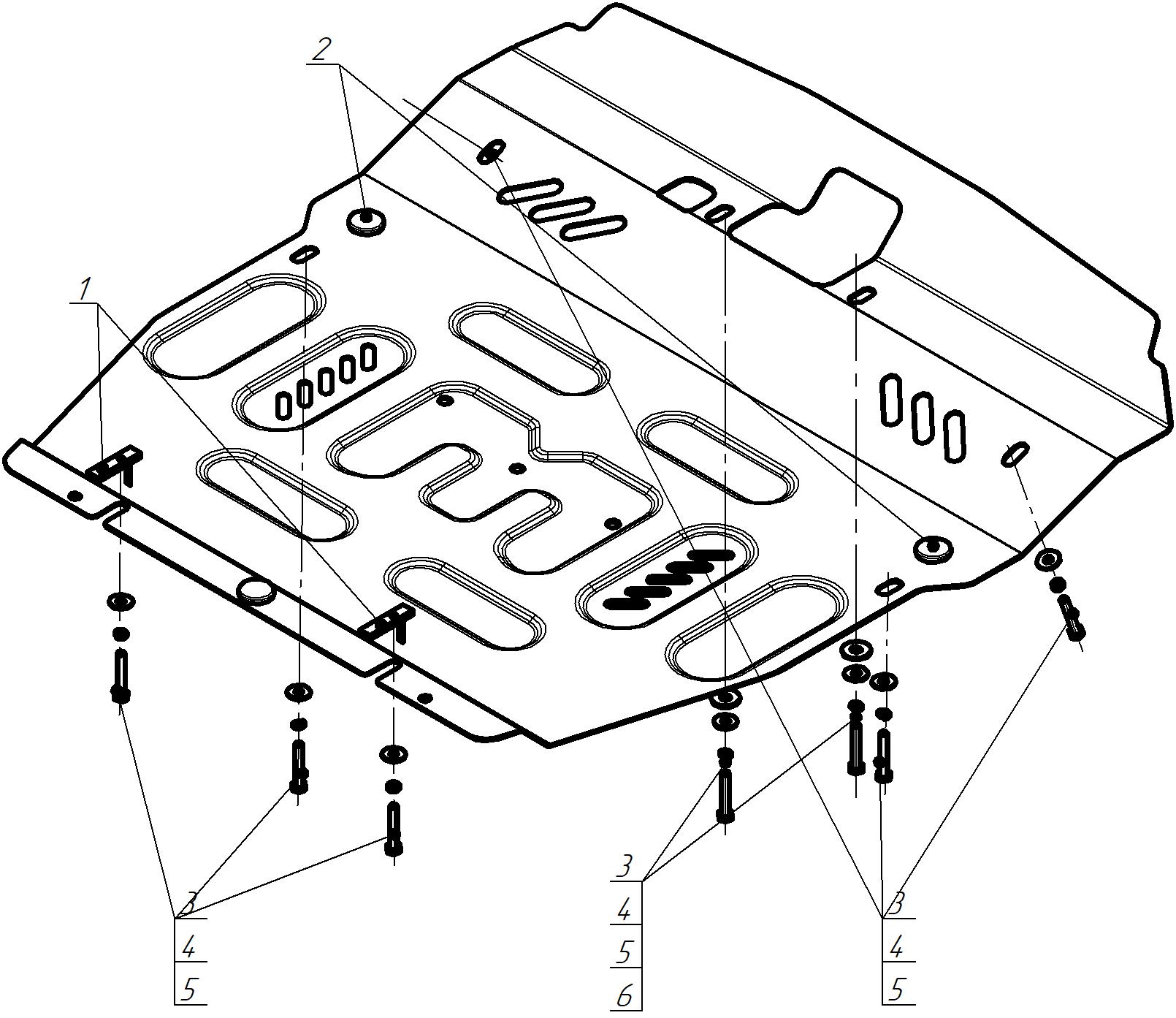 Защита двигателя, Защита коробки переключения передач (кпп) MOTODOR для Hyundai Santa Fé II 2011 - 2012 арт. 70921