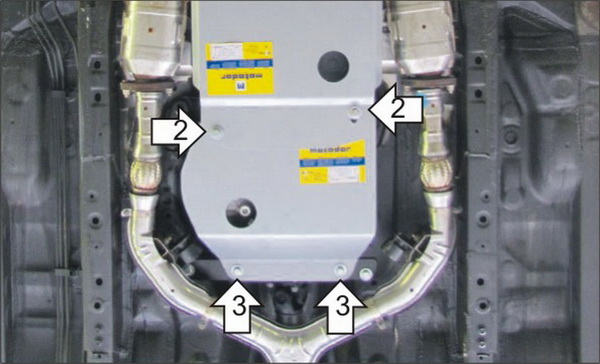 Устанавливать только вместе с защитой КПП MOTODOR 78001. 1. Установить на штатные резьбовые отверстия Балку при помощи Болтов М10х20х1,25, Шайб 10 и Гроверов 10. 2. Установить передние точки крепления Защиты на задние точки крепления щита 78001. 3. Установить задние точки крепления Защиты на ранее установленную Балку при помощи Болтов М10х20, Шайб 10 и Гроверов 10.