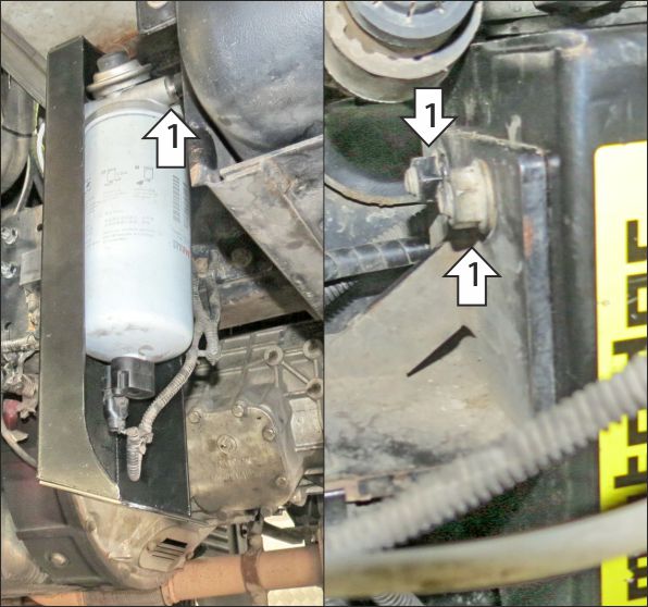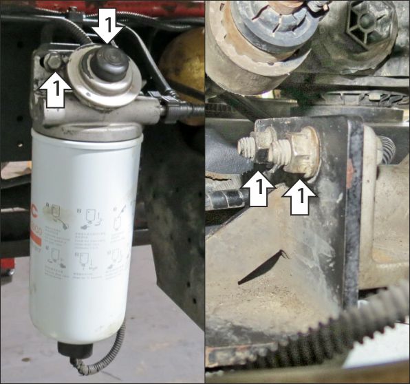 1. Под штатный крепеж топливного фильтра (между корпусом фильтра и кронштейном крепления) установить защиту.Затянуть крепеж с требуемым усилием.