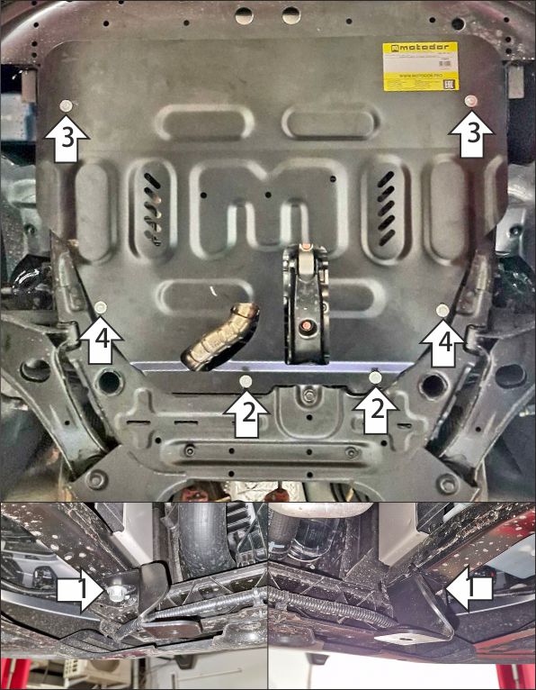 Защита двигателя, Защита коробки переключения передач (кпп) MOTODOR для KGM Tivoli 2023 - н.в. Сталь 2мм 10,5кг арт. 72803