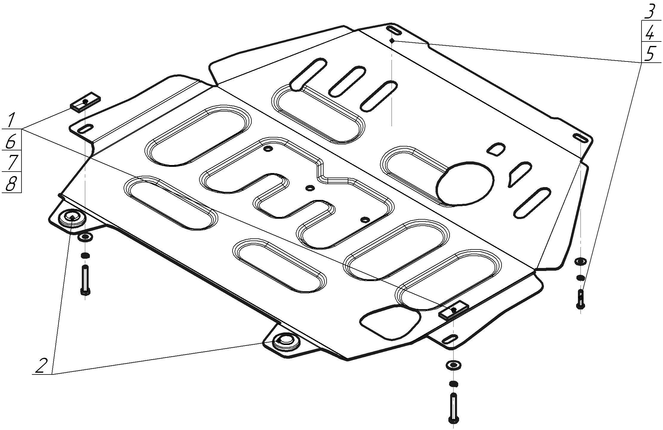 Защита двигателя, Защита коробки переключения передач (кпп) АвтоСтандарт для Mitsubishi Outlander III 2015 - 2017 арт. 51338