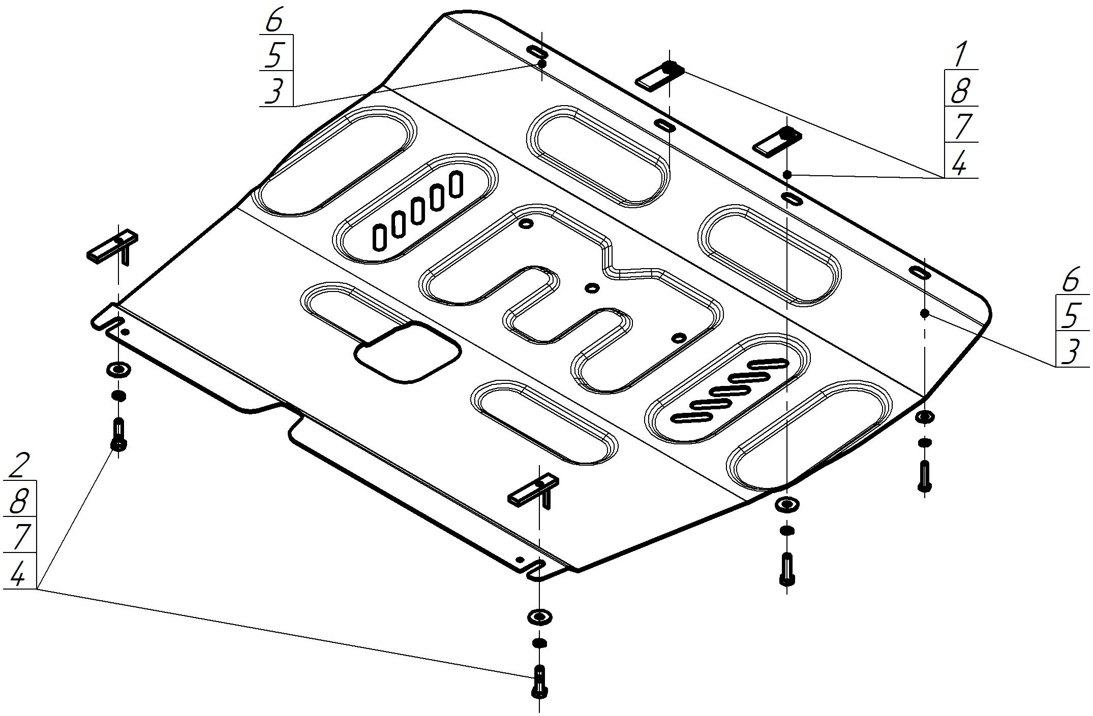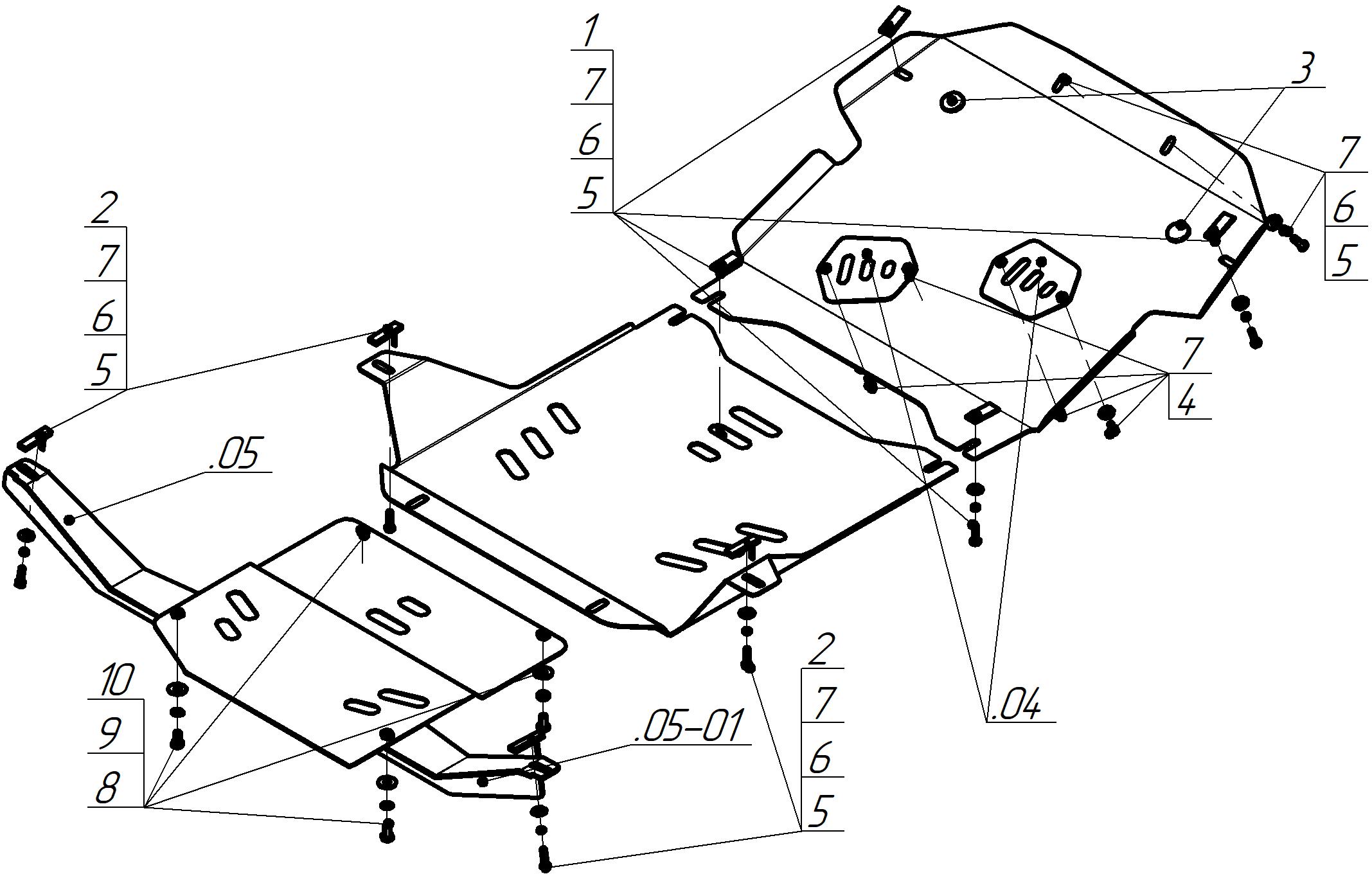 Защита двигателя, Защита коробки переключения передач (кпп), Защита переднего дифференциала, Защита раздаточной коробки MOTODOR для Mitsubishi Pajero Sport III 2021 - н.в. арт. 11339