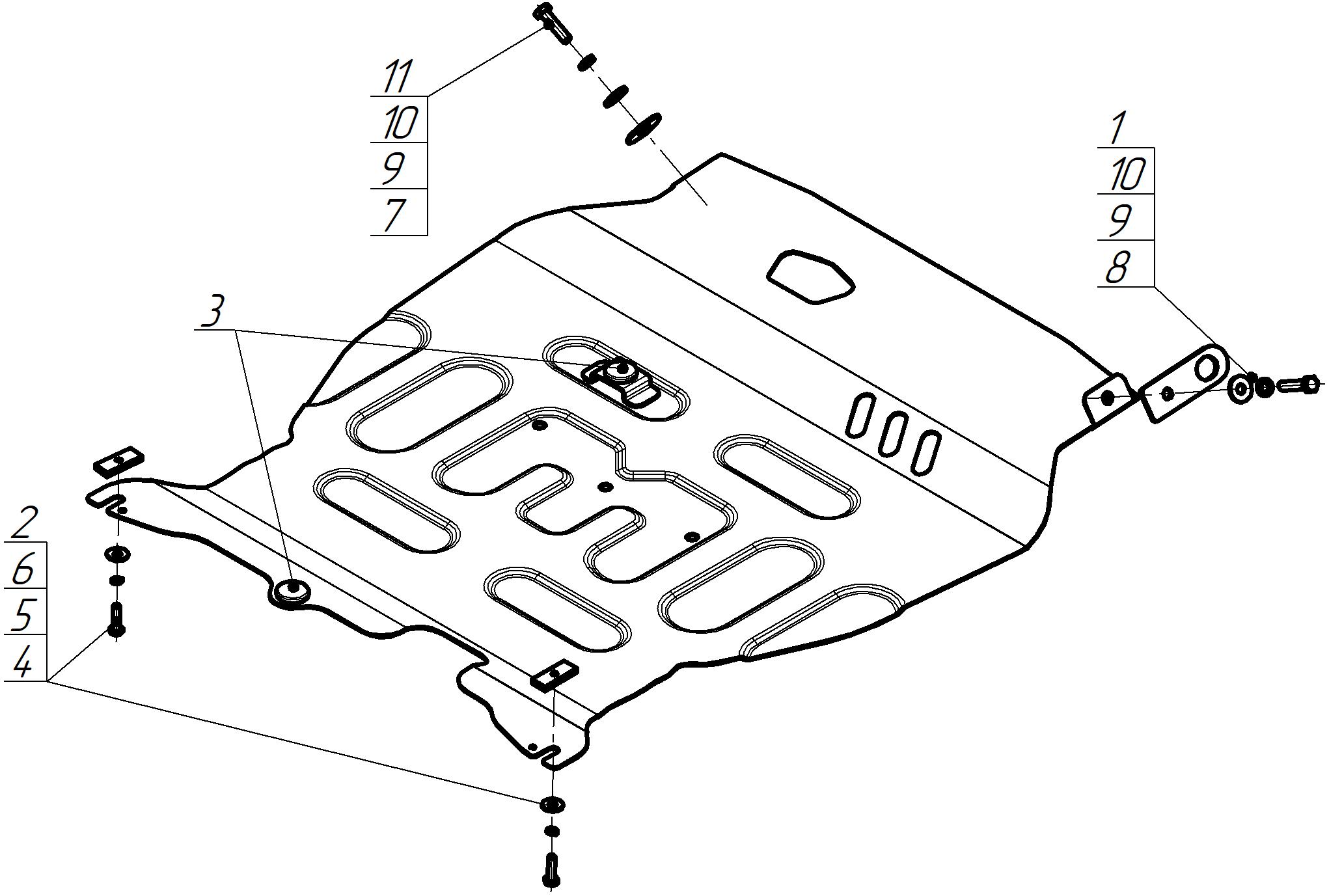 Защита двигателя, Защита коробки переключения передач (кпп) MOTODOR для Mitsubishi Outlander XL 2007 - 2009 арт. 71303