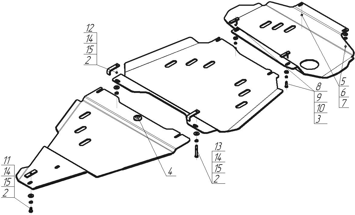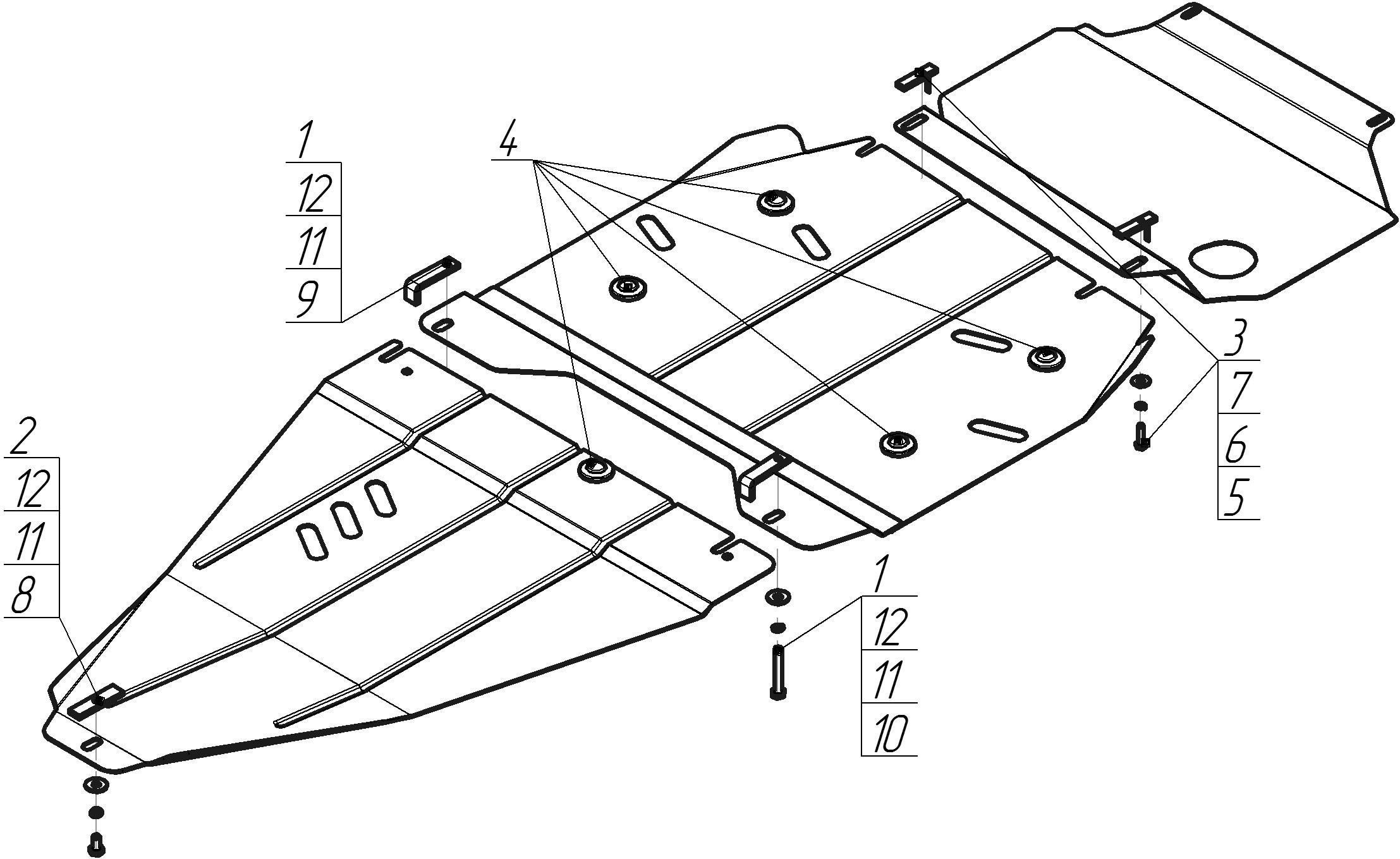 Защита двигателя, переднего дифференциала MOTODOR для Nissan Navara 2010 - 2016 арт. 71403
