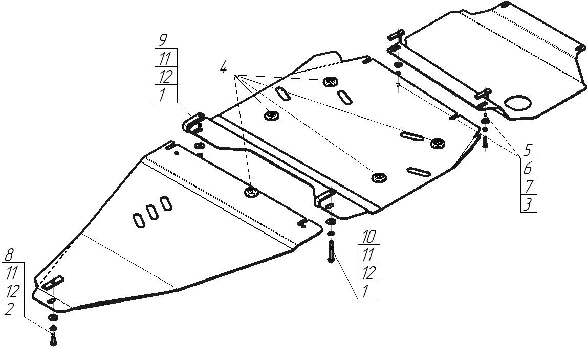 Защита двигателя, Защита коробки переключения передач (кпп), Защита раздаточной коробки MOTODOR для Nissan Navara 2010 - 2016 арт. 01450