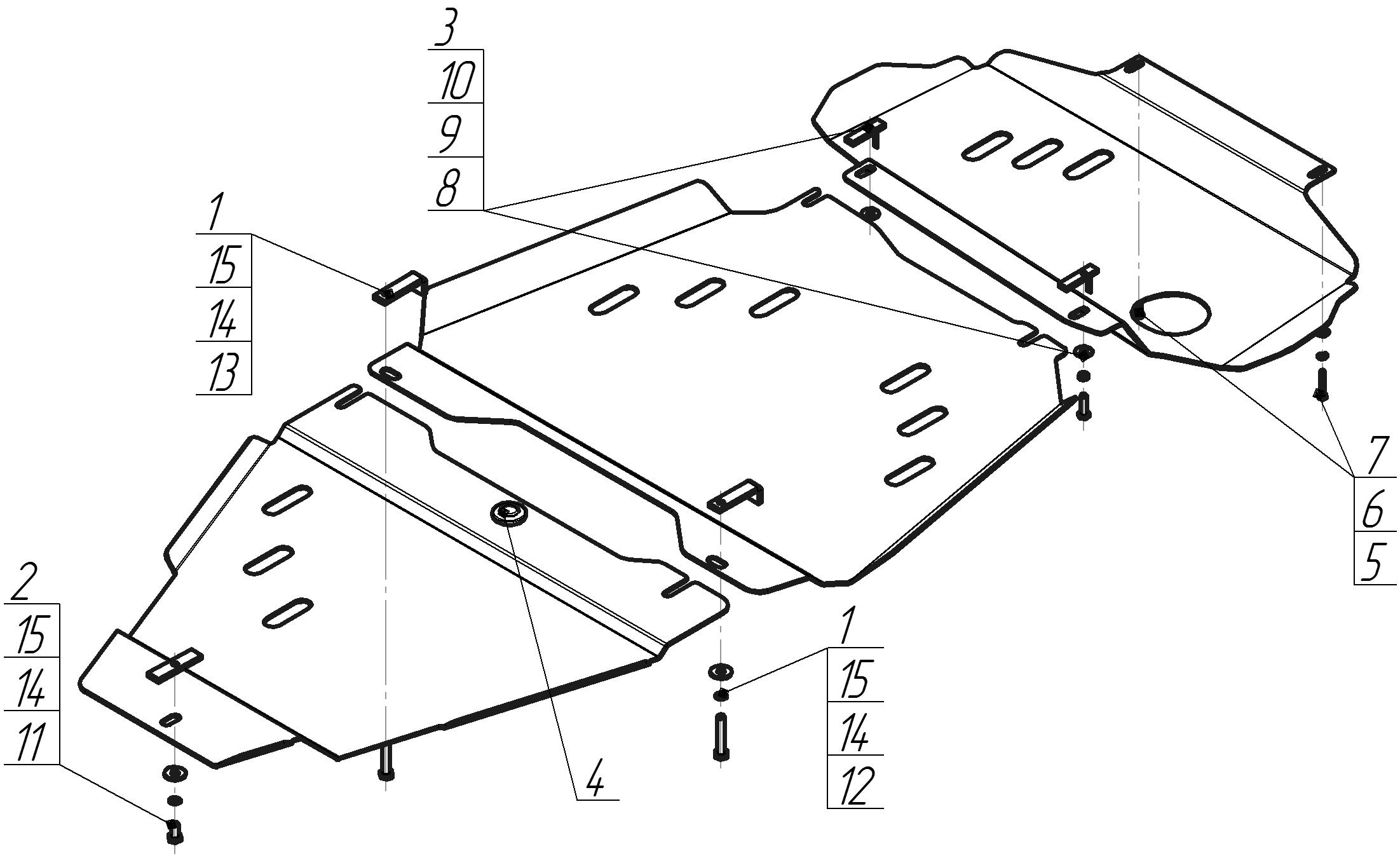 Защита двигателя, Защита коробки переключения передач (кпп), Защита раздаточной коробки MOTODOR для Nissan Pathfinder 2010 - 2014 арт. 11413