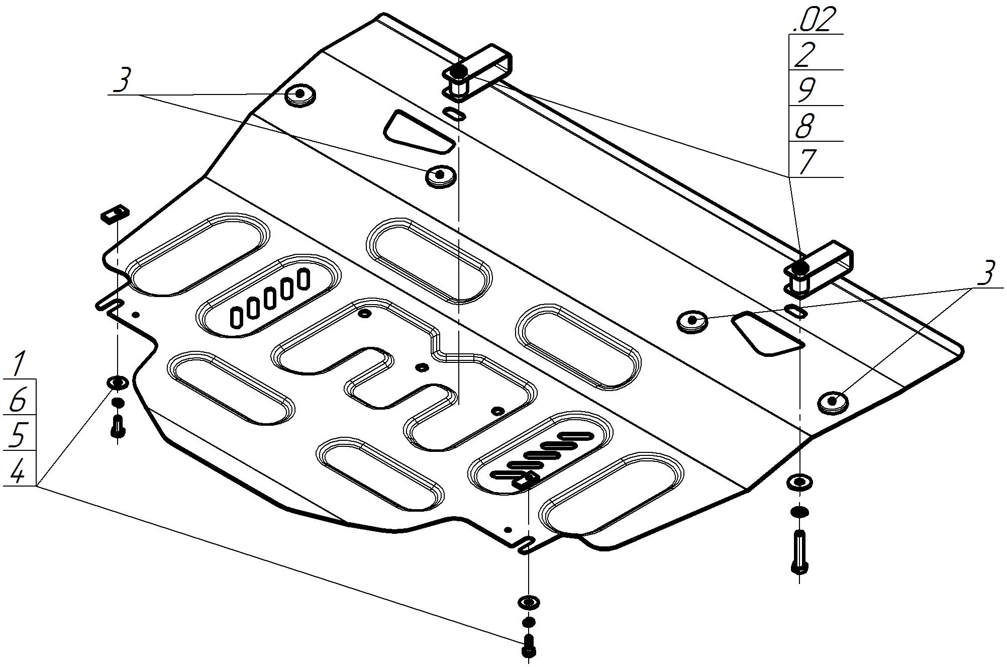 Защита двигателя, Защита коробки переключения передач (кпп) MOTODOR для Renault Laguna II 2001 - 2005 арт. 71715