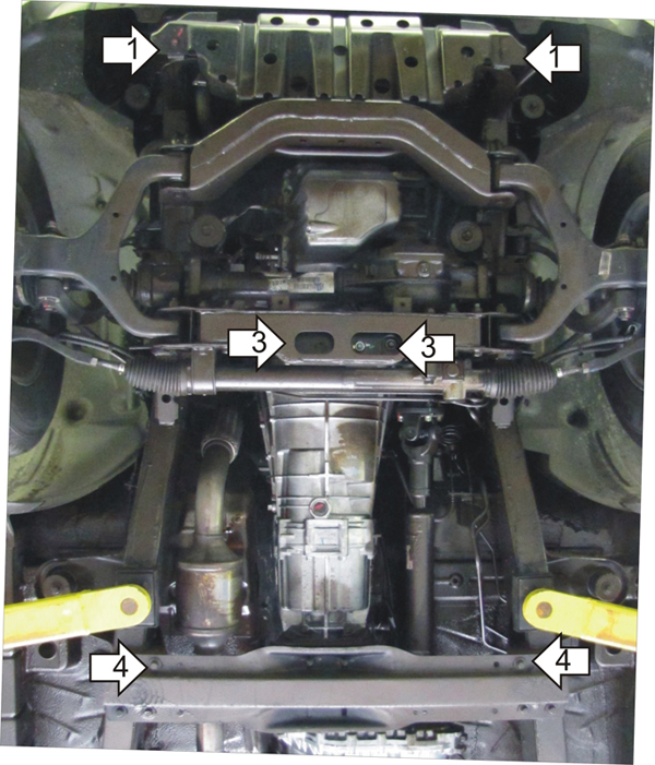 Защита двигателя, Защита переднего дифференциала, Защита коробки переключения передач (кпп), Защита радиатора MOTODOR для Ssangyong Actyon Sports 2012 - 2015 арт. 32803