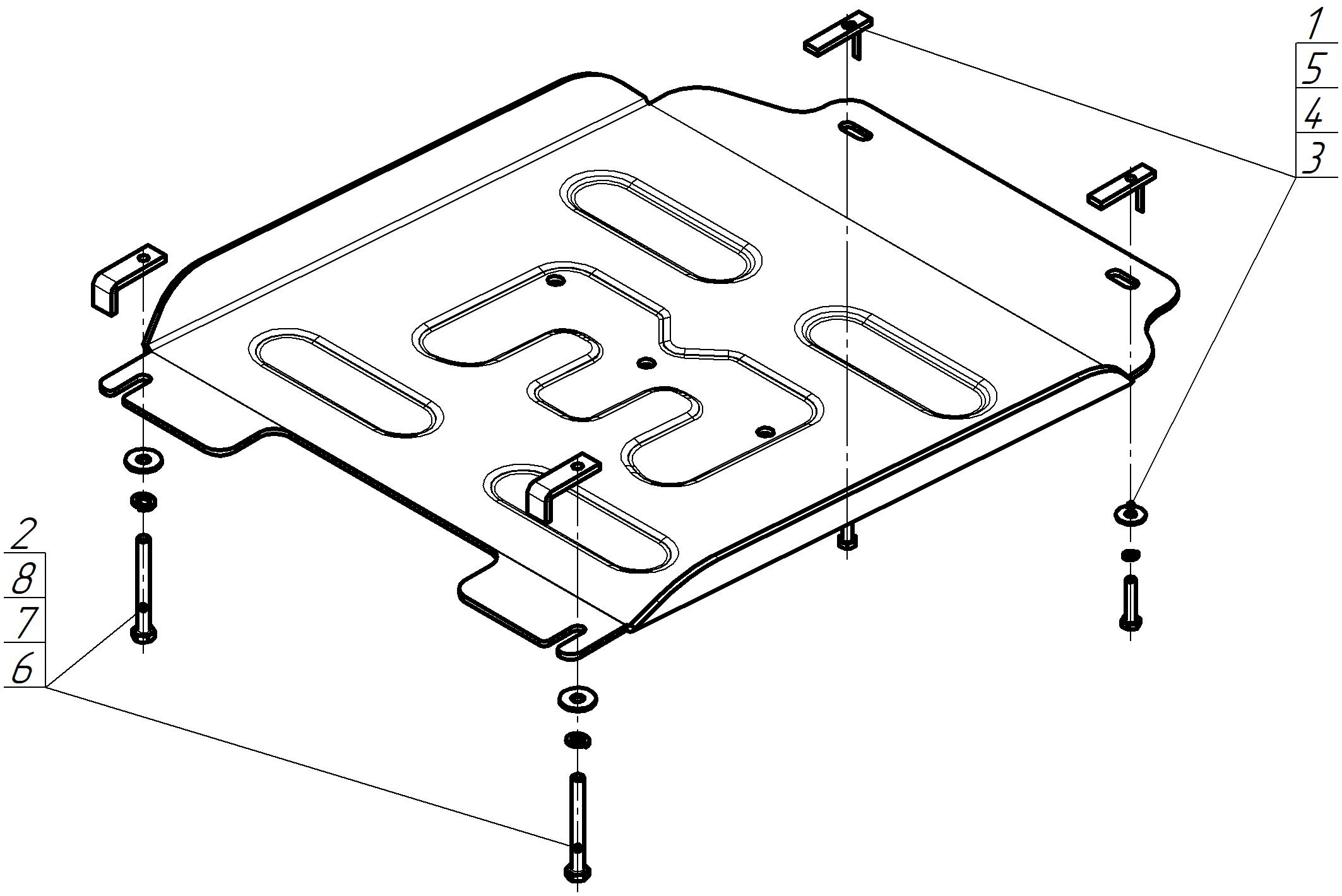 Защита двигателя, Защита коробки переключения передач (кпп) MOTODOR для Toyota Matrix 2001 - 2004 арт. 04002