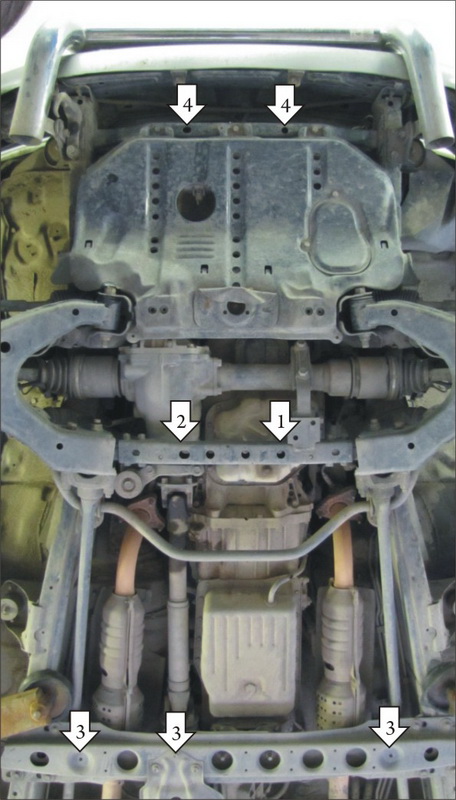 Защита двигателя, Защита переднего дифференциала, Защита коробки переключения передач (кпп), Защита раздаточной коробки MOTODOR для Toyota Land Cruiser 100 2002 - 2007 арт. 12512