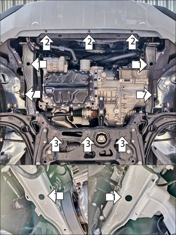 Защита двигателя, Защита коробки переключения передач (кпп) MOTODOR для Volkswagen T-Roc 2018 - н.в. (Китай) Сталь 2мм 12,9кг арт. 72305